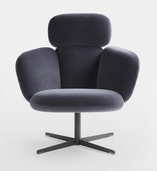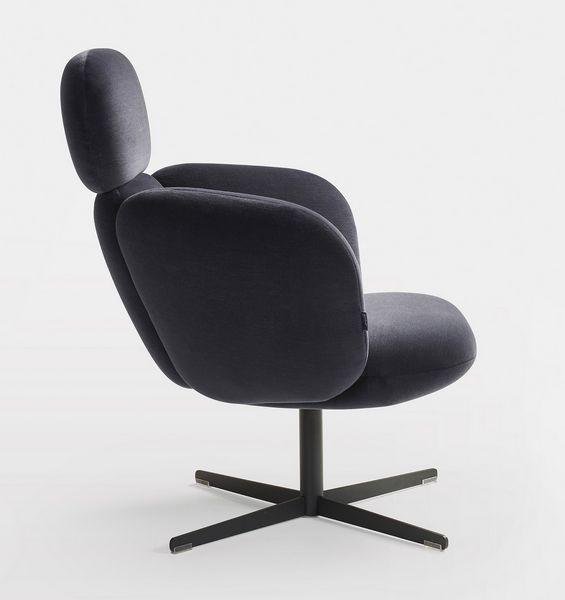 As an addition to the Bras Sofa series, designed Khodi Feiz create this attractive contemporary lounge chair called the Bras Easy Chair.  With a steel cross base, the enveloping shell of the soft Bras envelopes you.  The Bras Easy Chair High Back is equipped with a swivel and center return making the chair perfect for a lounge setting or reception area.