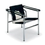 Le Corbusier’s LC 1 Basculant Chair was designed in 1928 with the assistance of Charlotte Perriand and Pierre Jeanneret. With inspiration from an English Officer’s Chair, the LC1 was a chair that broke with past elements such as padding or excessive fabric. Instead Le Corbusier’s modernist approach chose to show all aspects of the frame, arms, seat, and back.