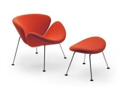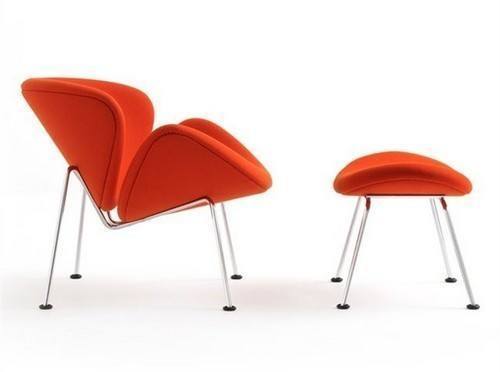 The Pierre Paulin Orange Slice Chair comprises two completely identical shells of pressed beech, covered with foam on a chromed metal frame. The Pierre Paulin Orange Slice chair was designed in 1960. The Orange Slice Chair is also available with a matching footstool.